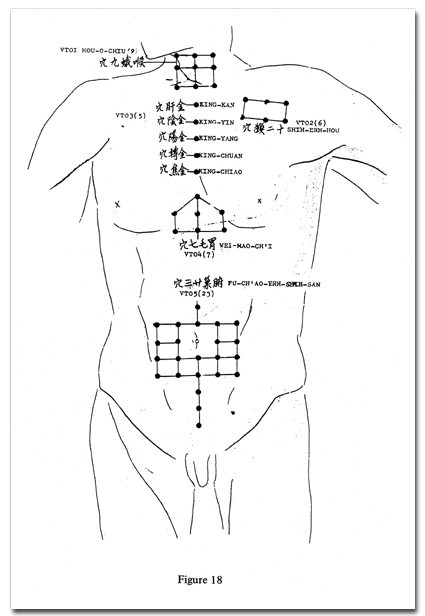 The Tung family style was the first to discover the striking effectiveness of using distal points on the opposite side of the body, while at the same time, actively moving the injured area to achieve the desired effect. For example, 3 points (Chen Chung, Shui Yu and Yun Pai) on the deltoid are applied on the arm, opposite the side of the knee that is experiencing pain. Then the knee and leg is the moved to assist the energy in making its way to the effected area. There is in most cases, an immediate change. Two other very effective hand points (Ling Ku and Ta Pai) can be applied on the side opposite to a painful sciatic nerve inflammation.
